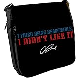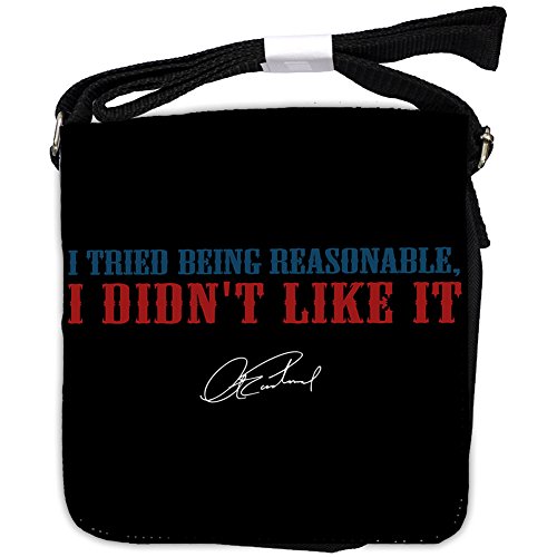 I tried being reasonable, I didn't like it ' - Célébrez ces célèbres paroles de sagesse de Clint Eastwood avec ce sac de messager élégant et pratique Convient pour les hommes et les femmes, ce sac à bandoulière unisexe est fait de solide tissu de toile de polyester, affichant une citation de Clint Eastwood Fait le cadeau parfait. Disponible en trois tailles: Petit: 185x199mm, Medium: 246x293mm, Large: 378x283mm, (les tailles sont approximatives.)