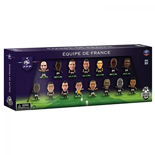Véritable phénomène mondial, les SoccerStarz sont les figurines à collectionner de Créative Toys Company ! Retrouvez l'équipe de France, nouveauté exclusive de Créative Toys Company, dans des packs de 15 figurines sous blister contenant Figurines avalable in the French Team Pack inclue; Bacary Sagna, Blaise Matuidi, Eliaquim Mangala, Franck Ribery, Hugo Lloris, Karim Benzema, Laurent Koscielny, Mamadou Sakho, Mathieu Valbuena, Olivier Giroud, Patrice Evra, Paul Pogba, Raphael Varane, Samir Nasri et Yohan Cabaye dans leur tenue d'équipe de France à domicile ! Les SoccerStarz sont des figurines de footballeurs sous licence officielle et totalement approuvées par les meilleures équipes nationales du monde, dont le Brésil, l'Angleterre, la Belgique, la France, l'Allemagne et l'Uruguay, mais aussi par les plus grands clubs d'Europe, dont Arsenal, Chelsea, Liverpool, Barcelone, le Real Madrid, le PSG et bien d'autres ! Chaque figurine a été sculptée et peinte à la main pour garantir une ressemblance incroyable avec les joueurs. Proposant plus de 500 figurines de footballeurs à collectionner, comme Lionel Messi de Barcelone et Wayne Rooney de Manchester United, SoccerStarz est un incontournable pour tous les fans de foot.