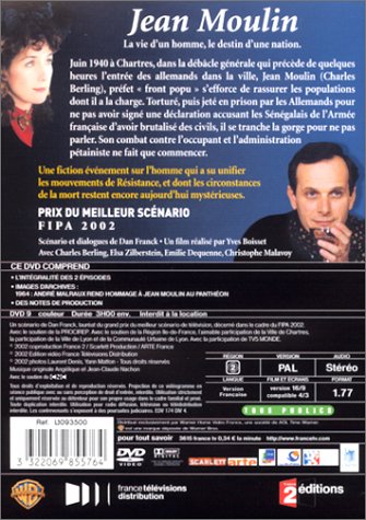 Jean Moulin nous plonge dans une période mal connue (puisque secrète) de l'histoire de la Seconde Guerre mondiale : la Résistance. Elle est le théâtre de l'action de Jean Moulin, qui se démène dans sa mission de fédérateur entre les différentes organisations clandestines. L'homme a donné sa vie pour libérer son pays, restant fidèle au général de Gaulle jusqu'à la fin. C'est un Charles Berling d'une grande justesse, tout en intériorité, qui interprète ce personnage sombre, impénétrable qui fut le fameux Max que Klaus Barbie, le boucher de Lyon, ne parvint pas à faire parler malgré les tortures les plus abominables. Ce DVD offre en bonus l'hommage de Malraux à un grand homme qui a dit non, l'occasion de réviser l'histoire et de mieux connaître ces hommes de l'ombre qui ont rendu à la France une certaine dignité. À ne pas rater. --Aurélie Rochman