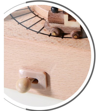 Attention: veillez mettre la voiture ou petit truc patiemment sur la boîte à musique, dans le rôle de magnétisme,le petit truc tourne automatique :Il y a de la musique, le train commence à tourner, accompagné de la belle musique