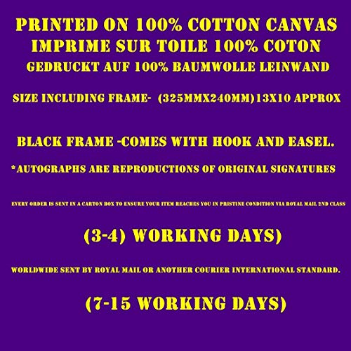 Imprimé sur papier 100% coton toile taille y compris cadre (325 mm x 240 mm) cadre noir - Livré avec crochet et chevalet. * autographes sont des reproductions de signatures d'origine * un professionnel de l'exact de haute qualité, reproduction d'un autographe original, authentique. Chaque commande est livré dans une boîte en carton pour garantir votre article vous parviennent en parfait état via Royal Mail 2e classe envoi dans le monde entier par la Royal Mail ou un autre transporteur norme internationale. (7-15 jours ouvrables) Merci pour votre visite, souhaite bonne chance chaque jour, Happy shopping Note couleurs sur votre écran et en l'impression du produit peut varier légèrement en raison de différences dans les écrans d'ordinateur et imprimantes ne passez pas à acheter maintenant